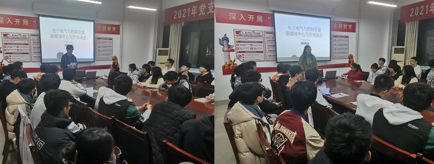 电子电气与控制学部于11月10日在机电楼B212组织召开学生干部写作培训会,旨在提升学生新闻写作技能,增强学生综合素质,提高工作效率和工作质量。本次培训会由控制学部辅导员史逸飞主讲,学部学生会各部门学生参加培训。