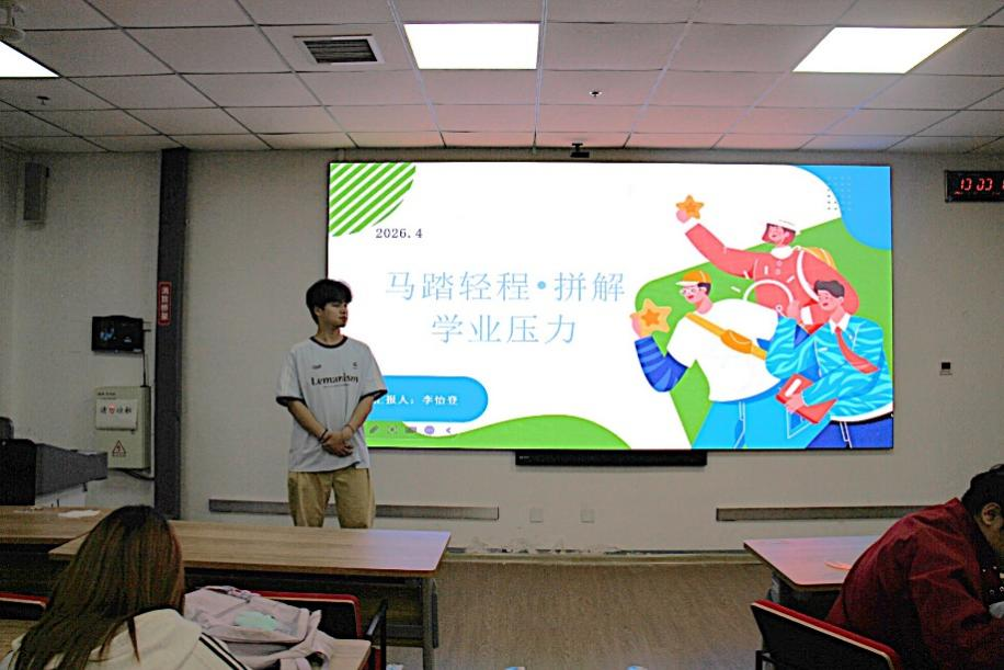 活动伊始,李怡登通过“学业压力快消局”游戏打破同学们之间的隔阂。在指令引导下,同学们以举手回应、无声释放情绪的方式,逐一感受自身现阶段的压力体验,通过游戏指引,同学们直观感受到学业压力的普遍性,从而减轻过度担忧,为后续的情绪接纳与调节奠定基础。